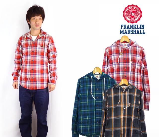 フランクリン マーシャル FRANKLIN&MARSHALL フード付き長袖チェックシャツ