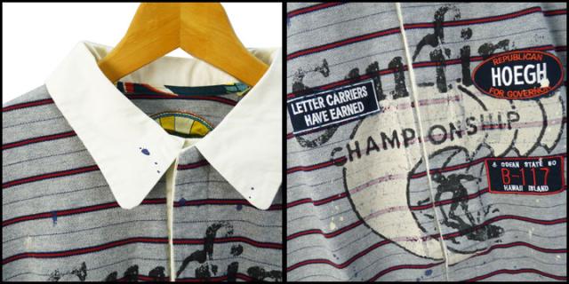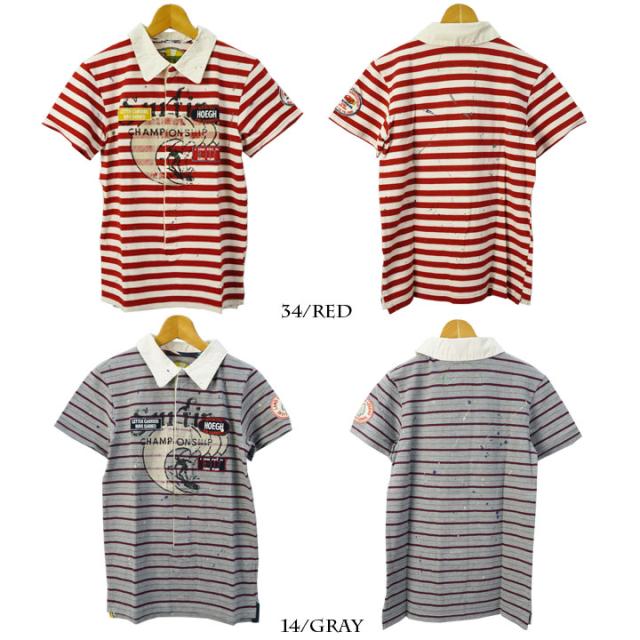 PINEAPPLE JUICE ユーズド風・ワッペン付きボーダーポロシャツ |