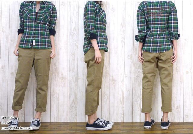 商品番号:”13-713t”D.M.G.(ドミンゴ)より、トラウザーパンツの紹介です。ラインがキレイなテーパードタイプで女性らしくすっきりとしたシルエットが特徴。ワーク要素を入れることでタイト過ぎないカジュアルにも合わせ易い一本に仕上がっています。ストレッチ素材で履きやすく動きやすいパンツ。落ち着いた色落ち感でよりカジュアルに。ほどよい緩さと、女性らしさを感じられる一本です。