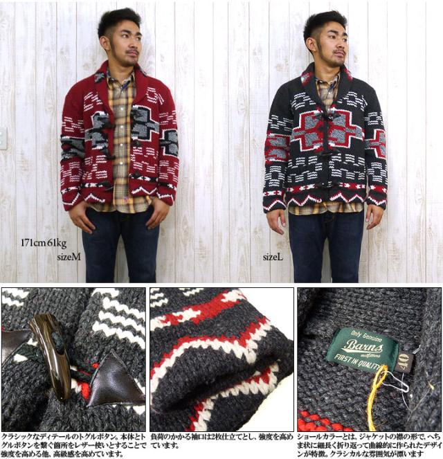 商品番号:"br-4991"フラットシーマシリーズなど、カットソーやスウェットに高い支持を持つブランド『BARNS』から、これからの季節にぴったりなハンドニットカーディガンの登場です。ボリュームあるショールカラーと、温かみのある手編みのこだわりぬいたディティールニットです。今回のニットも特徴的なネイティブ模様が編みこまれており、個性的な一枚に仕上がっています。ボタンにもインディアンモチーフで細かなところまでこだわりが行き届いています。 冬のアメカジスタイルにぜひ取り入れたいカーディガンです!