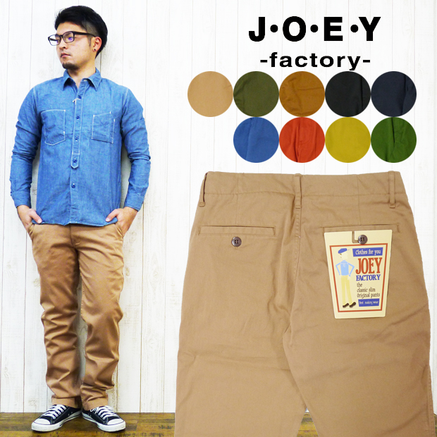 【J.O.E.Y factory】JOEY factoryジョーイファクトリー スリム ストレッチ テーパード チノ パンツ jf1314