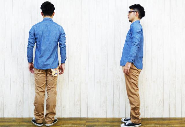 ![]() ■モデル■身長174センチ 体重65キロ Mを着用(普段ボトムのサイズは31インチが多いです。ストレッチが利いているため履きやすくなっています。) シャツ:スペルバウンド SPELLBOUND シャンブレーワークシャツネイビー |
