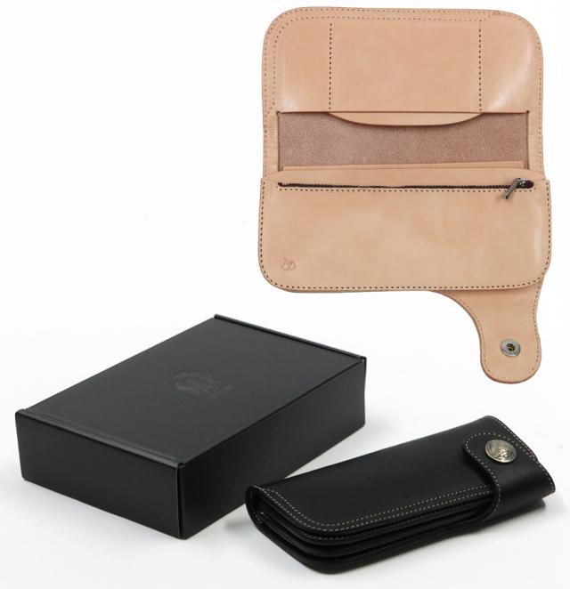 商品番号:”s-cw02ac”創業当時からラインナップしている定番のロングウォレット「CW-02A」のカード入れの仕切りを増やすなど細かいディティールをアップデートしたモデルがこちら。レッドムーンを代表するアイテムであるショートウォレットのHR-01Aのデザインをそのままロングにアレンジしたモデルでもある。ホルダー部に取り付けられたオリジナルのジャーマンシルバーコンチョは、レッドムーンの象徴であり複雑で立体的な造形。曲面と平面を融合させ、ミリ単位で計算されつくしたデザインは、紙幣やコインを入れても形が崩れる事なく使い勝手を追求した、究極の形と言える逸品。<サイズ>横:190mm 縦:95mm マチ:25mm (閉じた状態)