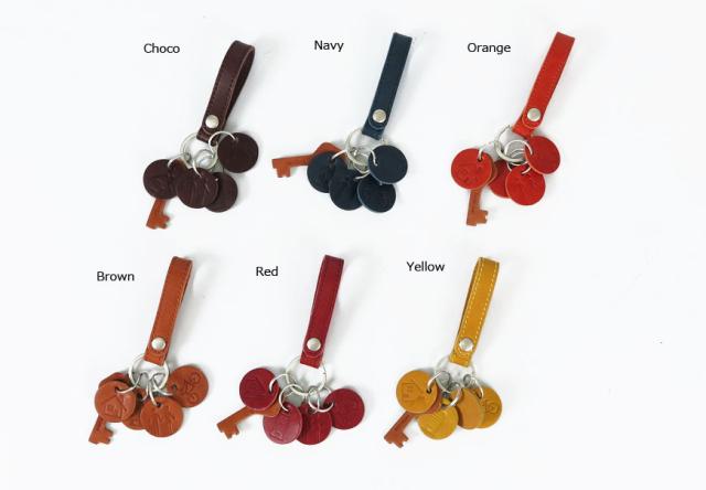 商品番号:”hawk6263”ホークカンパニーより、キーホルダーの紹介です。6色とカラーバリエーションが豊富でいいですね♪リングには家の鍵、自転車の鍵などわかりやすく分類されているマークの付いたレザーチップが付いています。レザー部分はしっかりとしたスナップボタンがついているので、ベルトループにもバッグにも引っ掛けられます。遊び心あるデザインと利便性で男女問わず、幅広く使えるアイテムです!【素材】牛革【サイズ】全長約14.5cm