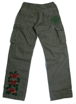 ![]() | ![]() エスニックテイストのワッペンや、刺繍を施した オリエンタルなカーゴパンツ。 夏の定番ともいえるカーゴパンツ、でも普通のデザインじゃ 他人とかぶっちゃって、面白くないですよね。 こんな個性派カーゴなら、街中でもアイデンティティを主張しまくれます! シルエットは、結構ルーズなんだけど、ダボダボした感じには見えず、 南国の衣装っぽい、夏にピッタリな雰囲気が出ています。 タンクトップやレザーのサンダルとあわせれば リゾート気分を味わえそうです♪ ![]() ◆オリーブ ◆チャコールグレー ![]() ◆コットン100% ![]()