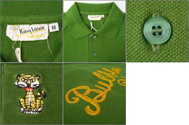 商品番号:”kl76992”1940〜70年代にかけてミズーリ州カンサスシティーに本社を構えていたホリデー・スポーツウェア社のボウリングシャツ・ブランド「King Louie・キングルイ」今や幻となってしまった「キングルイ」ブランドを、シュガーケーン・バズリクソンズでお馴染みの東洋エンタープライス社が現代にそのまま再現!70年代当時キングルイが、ボウリングシャツとしてリリースした非常に珍しいコットン鹿の子を使用したポロシャツになります。胸ポケットにはキングルイのアイコンでもあるトラの刺繍が入っています。バックには肉厚なチェーン刺繍が施されており、立体感がありとてもカッコイイです。襟にワンポイント刺繍、パイピングラインとアメカジテイスト、クラシック・レトロテイストなデザインが魅力。バイカーズ・ライダースにもおすすめの現代版レトロポロシャツです!
