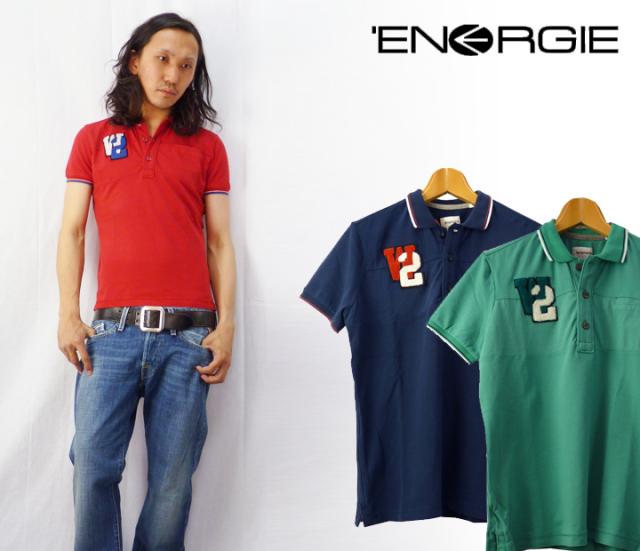 ENERGIE エナジー レタードワッペン半袖鹿の子ポロシャツ