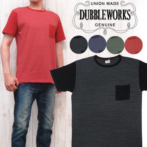 ダブルワークス DUBBLE WORKS Tシャツ 半袖 クルーネック ヘザーカラー 杢 吊り編み ポケット バインダーネック 無地 ww37004