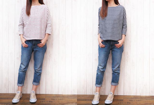 【スウェット】■Allumer ドルマンスリーブ ボーダー カットソー トップス 8155903