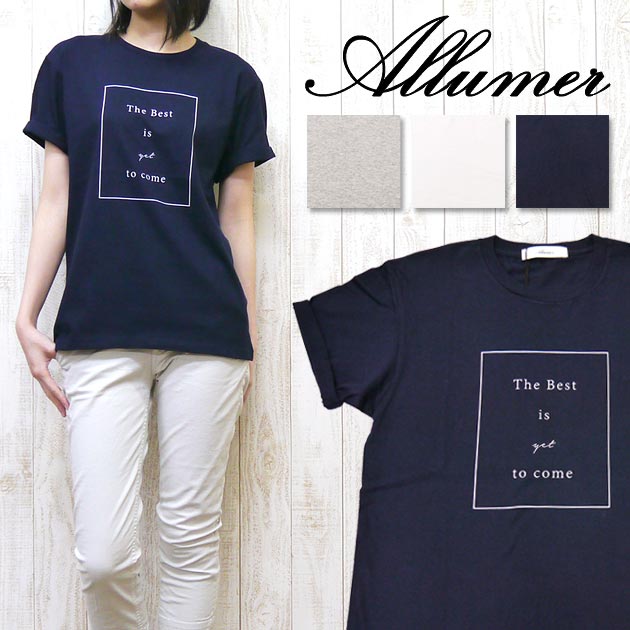 【Allumer】 【アリュメール】 【レディース】 【Allumer】 Tシャツ 半袖 プリント ロールアップ クルーネック 8246803
