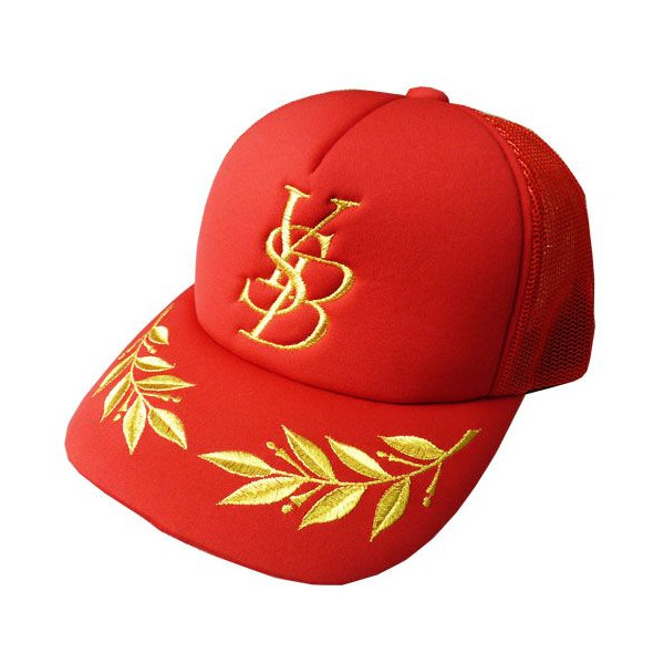 << 刺繍メッシュキャップ 「YSB」 >> アメカジテイストの真っ赤なメッシュキャップ!ゴールドの刺繍が入っていて、ツバの部分にまでこだわりが行き届いたキャップ。もちろん後ろはアジャスターが付いていて調節可能です。とても目立つ印象的なキャップなので古着系などと合わせても相性はバツグン!数量が少なめなので気になる方はお早めに!<サイズ>頭周り:約58cm(アジャスターで調節可能です。)ツバ:約8cm