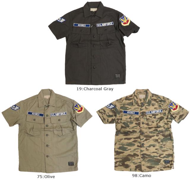 【半袖シャツ】■アビレックス ヘリンボーン半袖ミリタリーワークシャツ 6165099