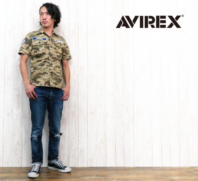 AVIREX アビレックス アヴィレックス ヘリンボーン ミリタリー 半袖 コットン ワッペン 刺繍 CTTN avi6165099