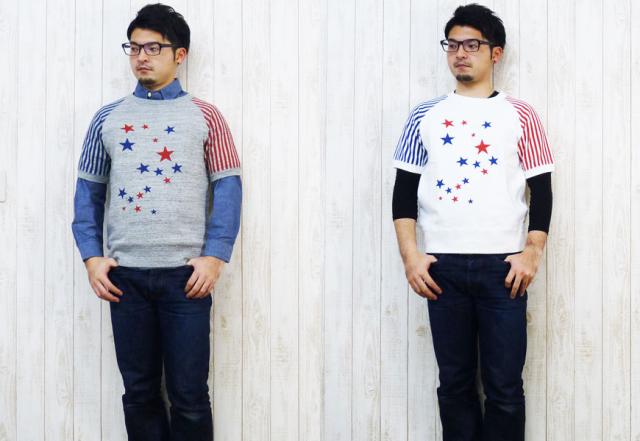 吸水性の高い半袖スウェット登場!! 裏起毛したヴィンテージ感漂う半袖スウェットの登場です。 短めのリブでTシャツのような雰囲気の半袖スウェット。 フロントのスターマークと腕に入ったストライプがアメリカを思わせるデザインに仕上がっております。 Tシャツの上から着ても良いですし、 ロンTなどレイヤードコーデにもお勧めのライトウエイトな半袖スウェットです。 | |