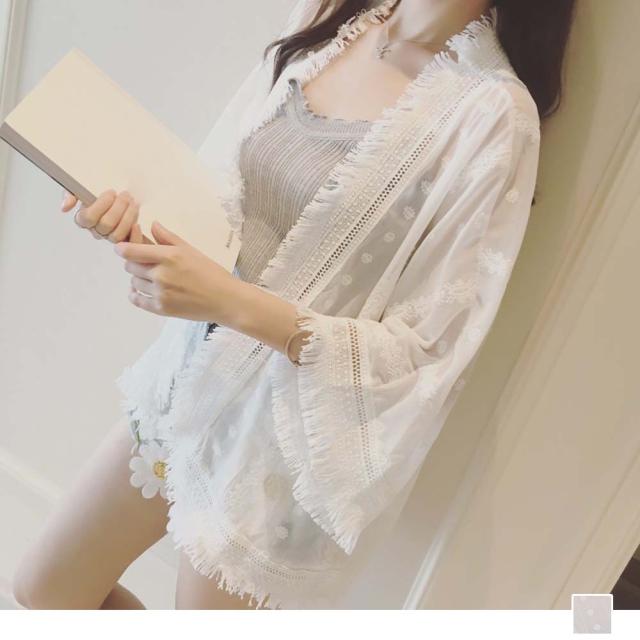 LAZA カーディガン ショート丈 ゆったり フリンジカーディガン UVカット シフォンガウン