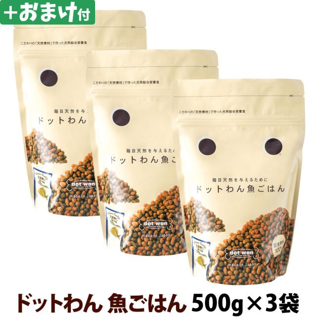 【沖縄以外送料無料】(選べるおまけ付き) ドットわん 魚ごはん 500g×3袋 【通常2-5ヶ月の賞味期限で出荷】