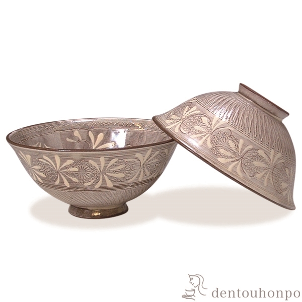 ノスタルジックなセピア色の生地。繊細で優雅な三島紋と白泥紋。それらがみごとに調和した、格調高い器です。
