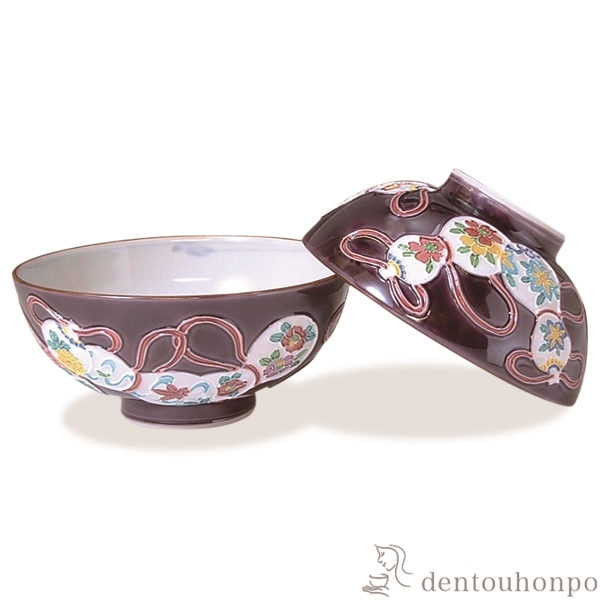 「送料無料」 組飯碗 紫交趾六瓢 ペア ( 退職祝い 定年 ギフト プレゼント ご飯茶碗 結婚祝い おすすめ セット 清水焼 京焼 結婚 )