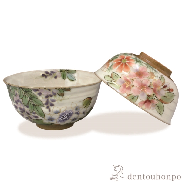 「送料無料」 組飯碗 花移ろい ペア ( 名入れ有料 退職祝い 定年 ギフト プレゼント ご飯茶碗 結婚祝い おすすめ セット 清水焼 京焼 )