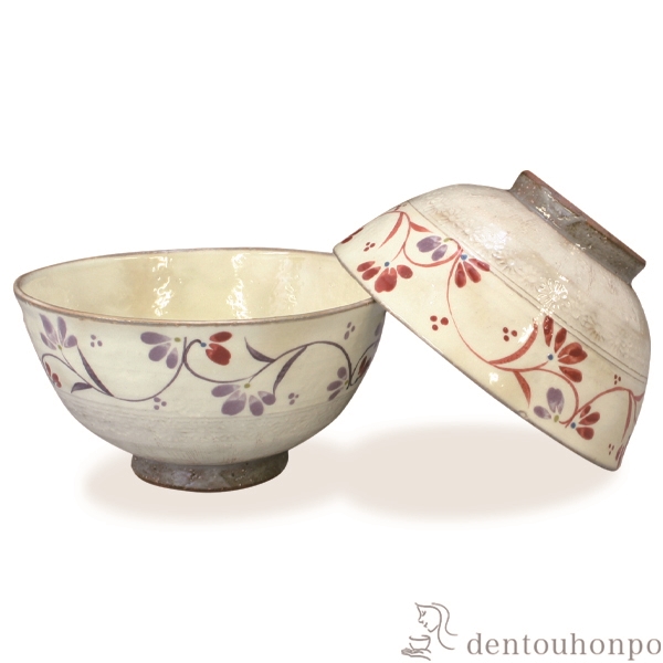 「送料無料」 組飯碗 粉引唐草 ペア ( 名入れ有料 退職祝い 定年 ギフト プレゼント ご飯茶碗 結婚祝い おすすめ セット 清水焼 京焼 )