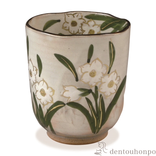 「送料無料」 湯呑 花記行 水仙 ( 名入れ有料 退職祝い 定年 湯のみ ゆのみ 湯飲み セット プレゼント 清水焼 京焼 結婚 出産 内祝い )