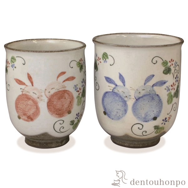 「送料無料」 組湯呑 花うさぎ ペア ( 名入れ有料 退職祝い 定年 湯呑み 湯のみ セット 湯飲み おすすめ セット 清水焼 京焼 結婚 出産 )