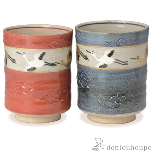 「送料無料」 組湯呑 染赤雲鶴 ペア ( 名入れ有料 退職祝い 定年 湯呑み 湯のみ セット 湯飲み おすすめ セット 清水焼 京焼 結婚 出産 )
