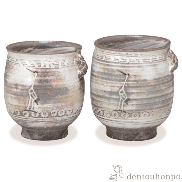 「送料無料」 組湯呑 粉引鶴亀 ペア ( 名入れ有料 退職祝い 定年 湯呑み 湯のみ セット 湯飲み おすすめ セット 清水焼 京焼 結婚 出産 )