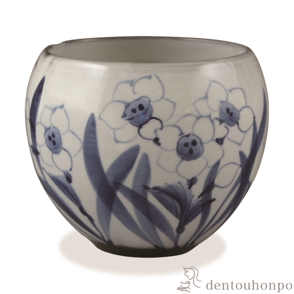 「送料無料」 お茶呑茶碗 染付草花 染付水仙 ( 名入れ有料 退職祝い 定年 湯のみ ゆのみ 湯飲み カップ プレゼント 清水焼 京焼 結婚 )
