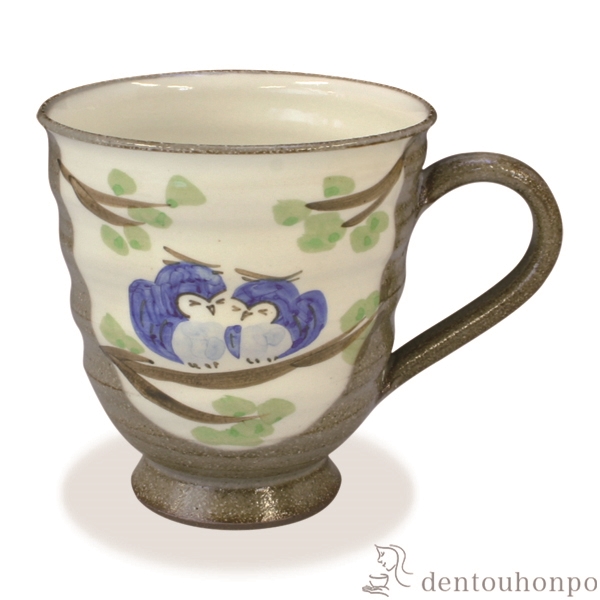 「送料無料」 マグカップ 粉引ふくろう 青 ( 名入れ有料 退職祝い 定年 プレゼント デザイン マグ オリジナル タンブラー 清水焼 )