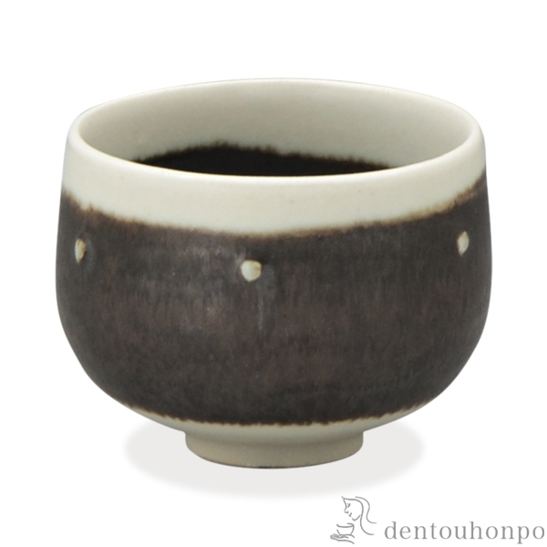 小さくて丸みのある形が可愛らしいぐい呑です。うつわの内外に表情豊かな黒鉄釉が施されています。