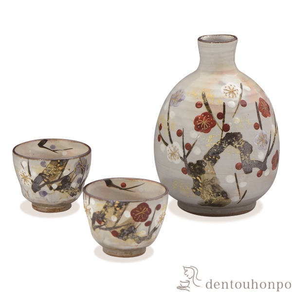 乾山調の温かみのある素地に華やかな梅の花が描かれています。おめでたい席にぴったりの酒器です。