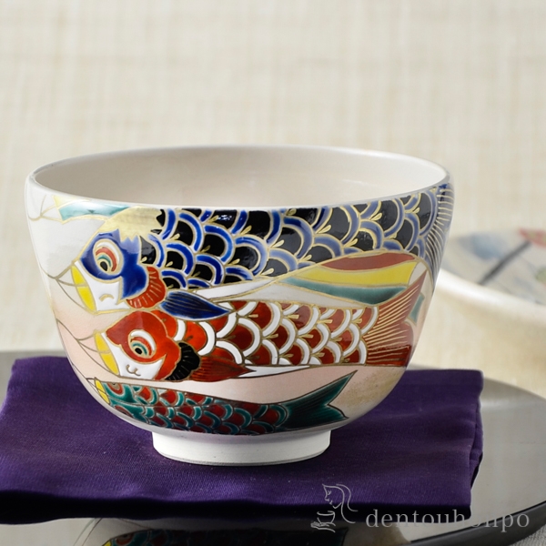 うつわから飛び出さんばかりに描かれた色鮮やかな鯉のぼり。端午の節句を華やかに演出してくれる抹茶碗です。
