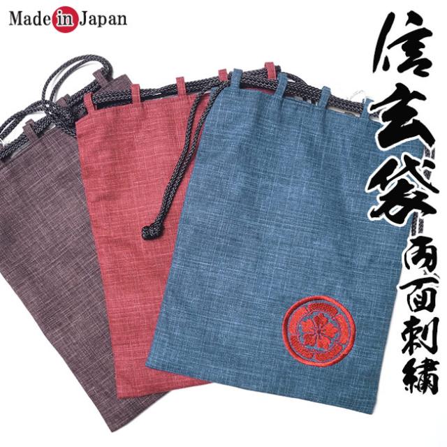 信玄袋 メンズ 巾着 両面家紋刺繍入り 父の日 ギフト ファッション