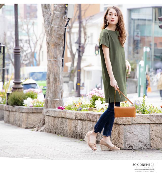 カジュアルな印象のボックスワンピを大人の女性に似合うよう、