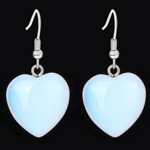 ハート型の合成石の白いホワイトオパールをセットした天然石風ステンレスピアス。