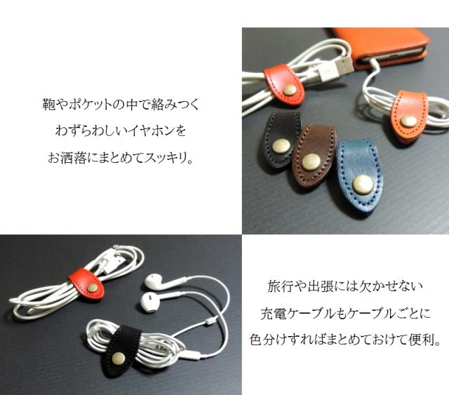 【イニシャル刻印無料】 栃木レザー コードクリップ イヤホンコードクリップ レザー イヤホンクリップ コードホルダー コードリール 巻き取り 本革 コードクリップ 日本製 ハンドメイド
