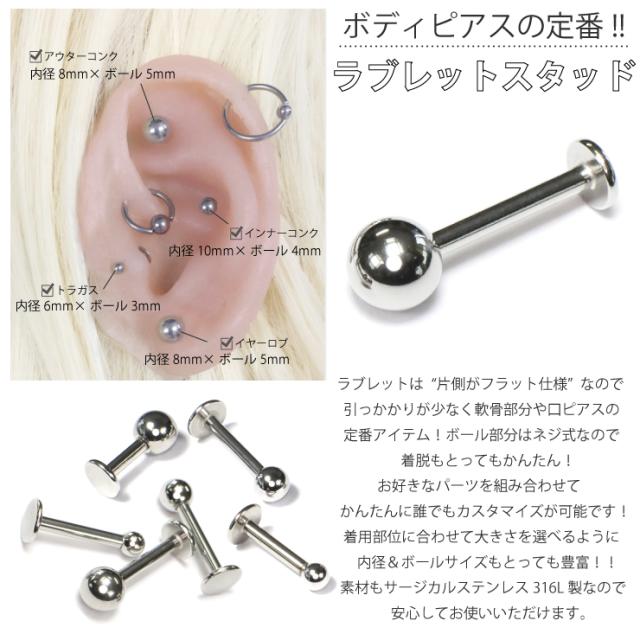 【メール便対応】ラブレット スタッド 18GA 16GA 14GA サージカルステンレス316L(医療用) トラガス【ボディピアス 口ピアス 軟骨ピアス トラガス ヘリックス スタンダード【bp139】┃
