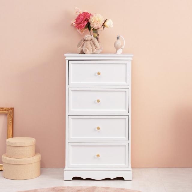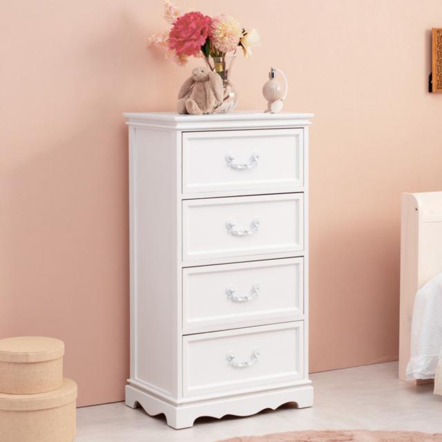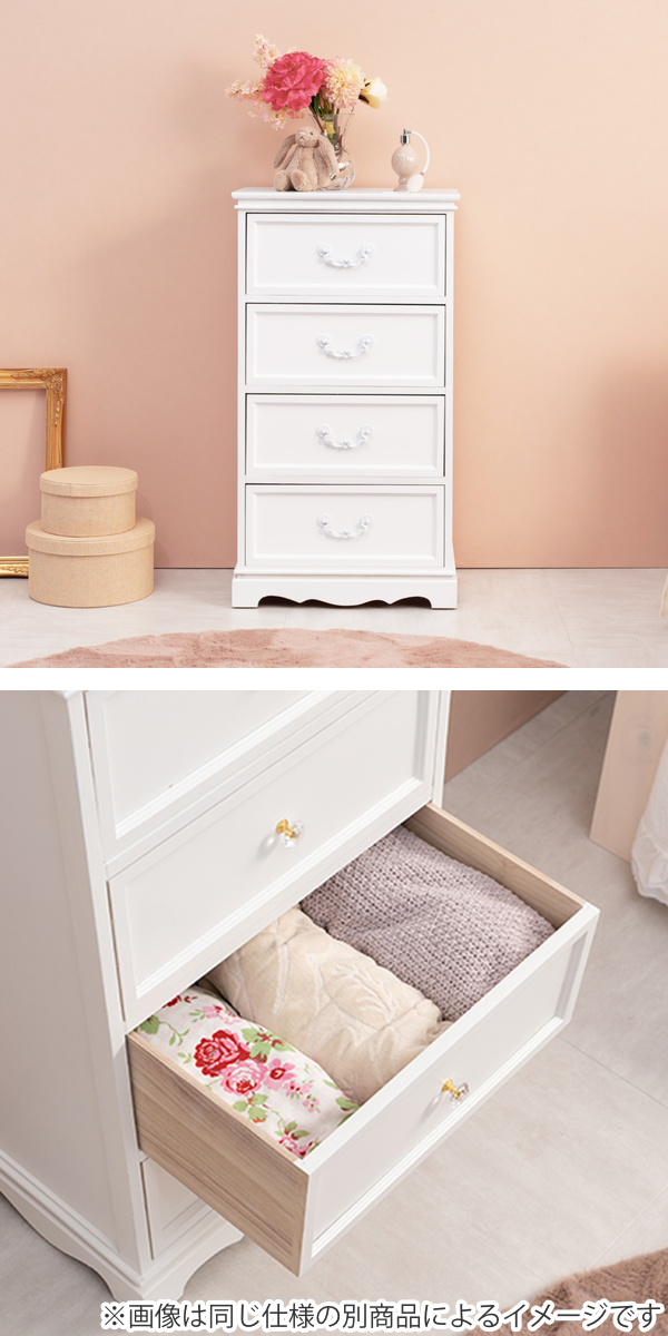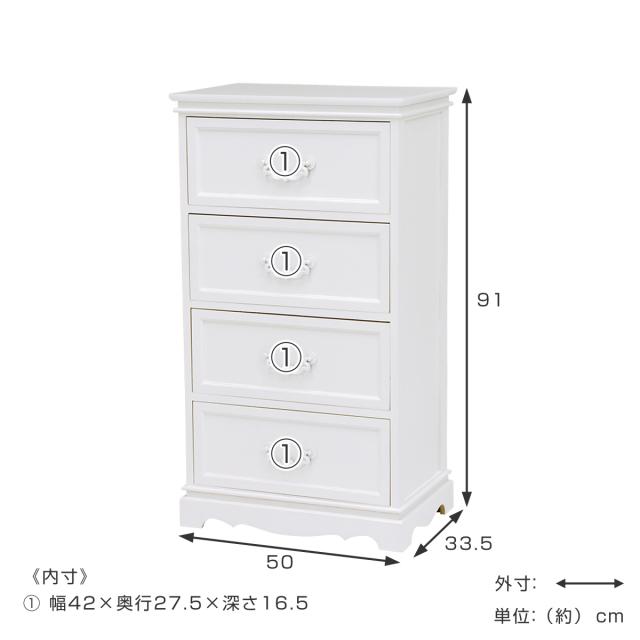 チェスト 4段 木製 カントリー調 シャビーウッド 幅50cm ( 姫系 白家具 ホワイト 桐製 引き出し 4杯 完成品 整理タンス サイドチェスト 衣類収納 リビング 収納 )