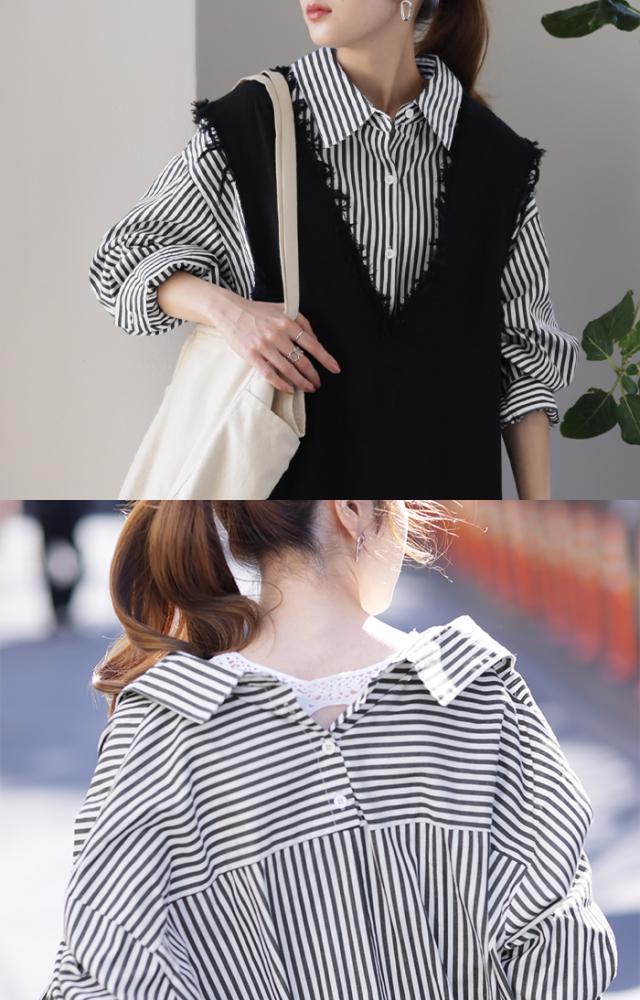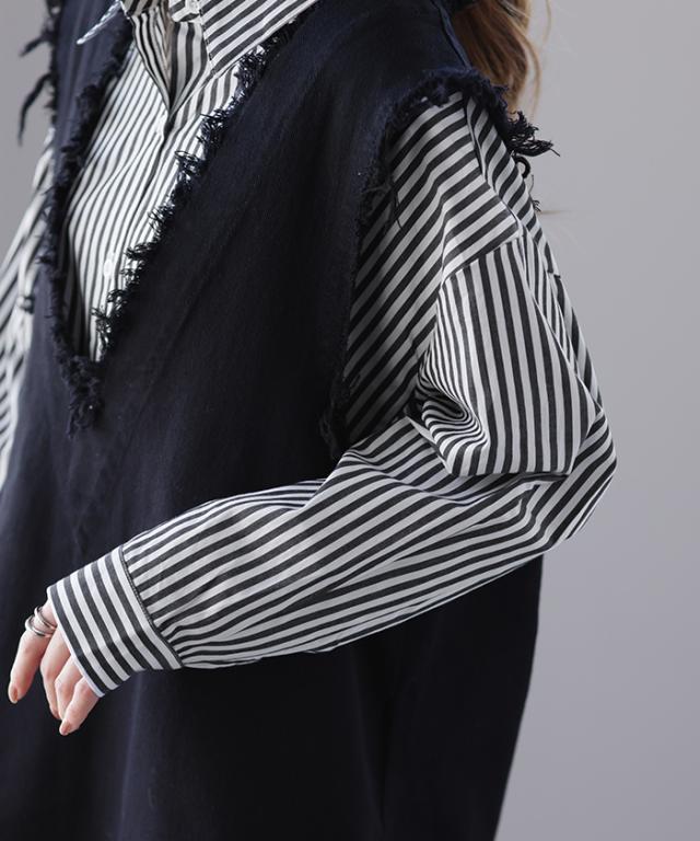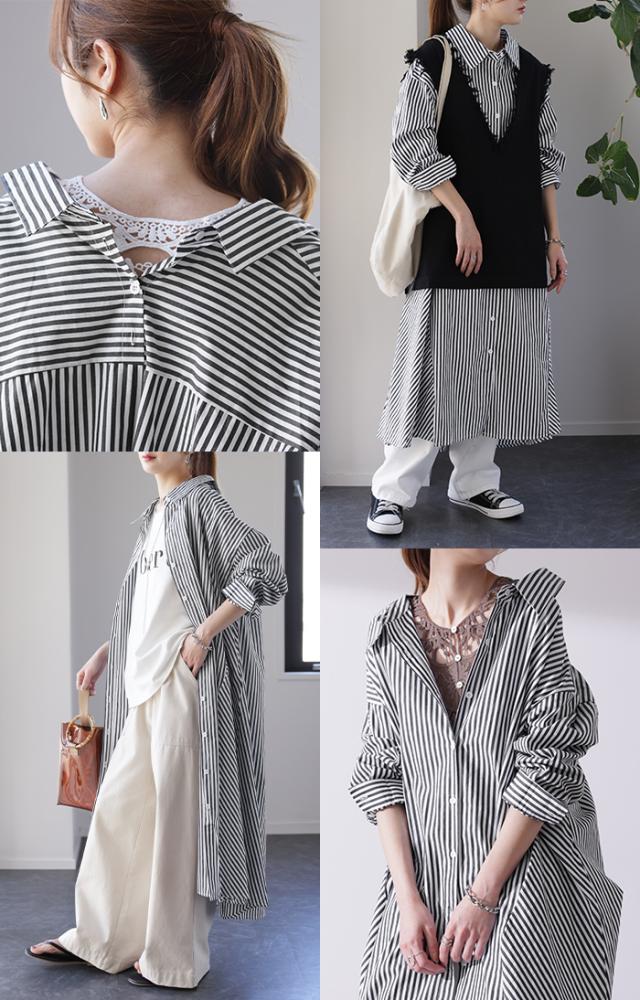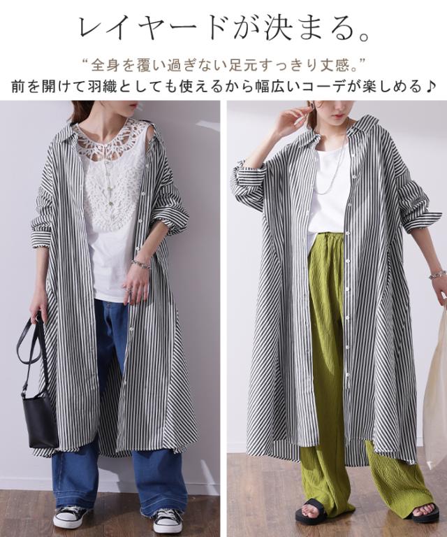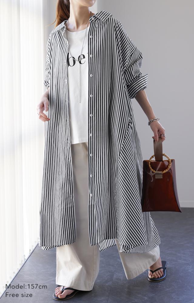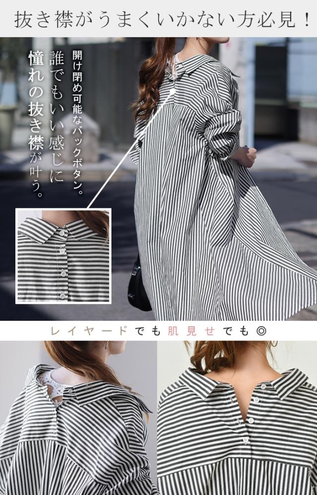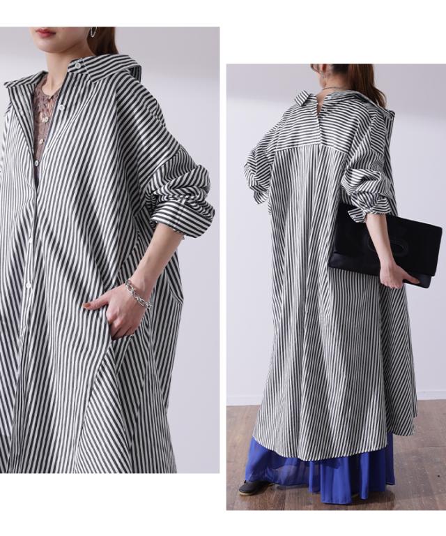 ワンピース ロングワンピース マキシ丈 マキシワンピース コットン100% ストライプ シャツワンピース シャツワンピ シャツ 抜き襟 細ストライプ マルチボーダー アシンメトリー ロング 長袖 大きいサイズ 冬 秋 秋新作