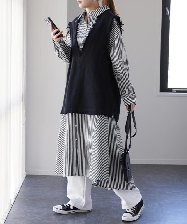 ゆるっとシルエットで抜け感たっぷりのシャツワンピ。