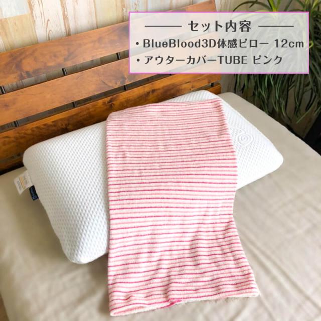 【セット内容】BlueBLood3D体感ピロー12cm・枕カバーTUBEピンク1枚