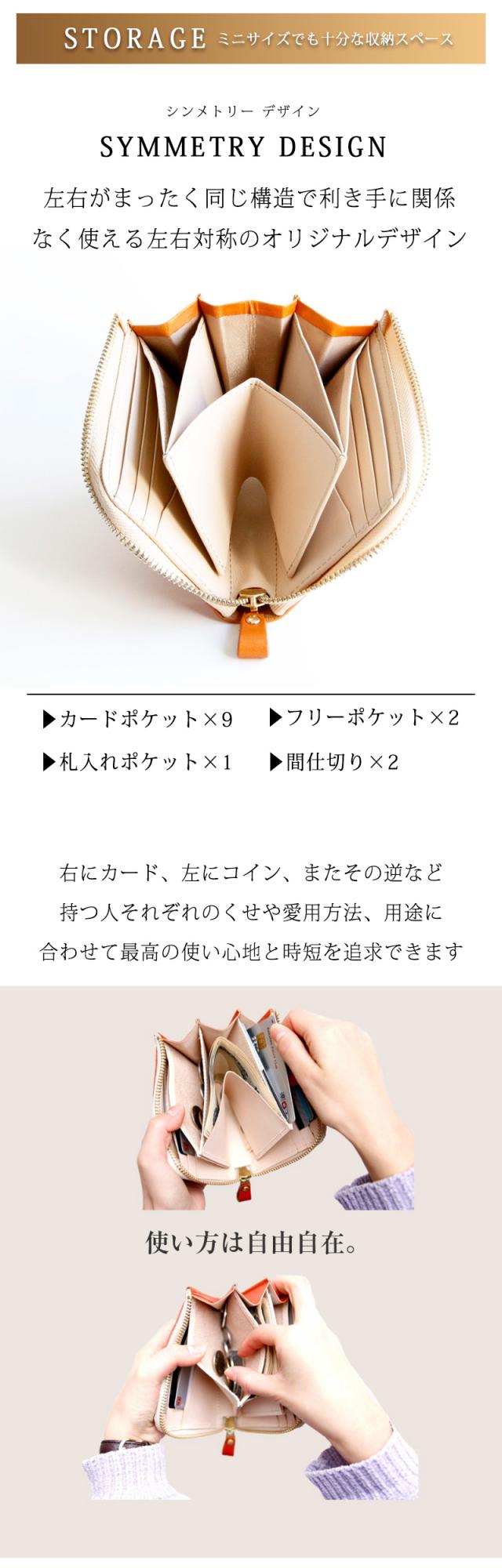普段使いはもちろん、ビジネス用、旅行用や冠婚葬祭など小さめバッグに入るミニ財布として、マルチに活躍できるミニ財布。