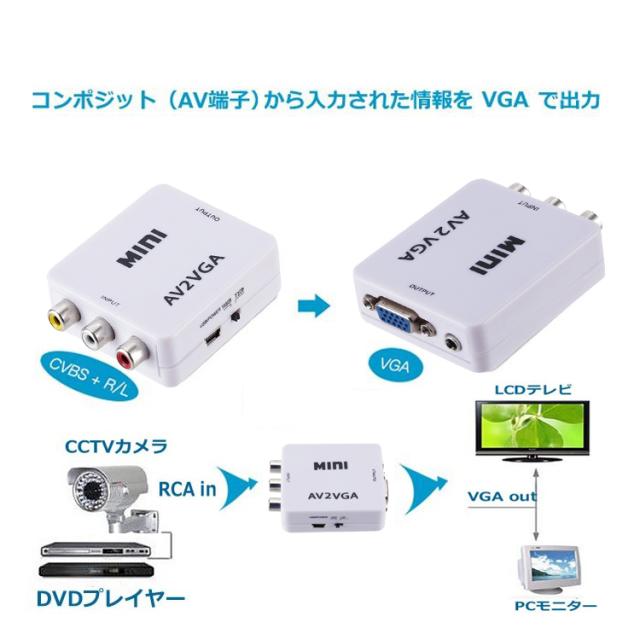 AV TO VGA AVからVGAへのコンバーター AV RCA CVBS信号をVGA信号に変換 VGAモニターに出力 VGAコンバーター AVTOVGAWH