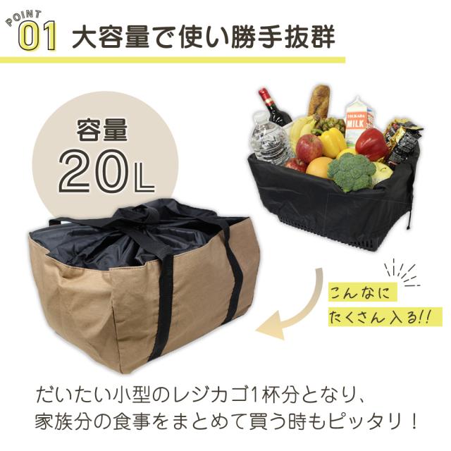 レジバッグ 保冷 大容量 20L 折りたたみ レジバック レジカゴ型 エコバッグ マチ付き レジ袋 カゴにセット おしゃれ コンパクト レジカウンター 買い物バッグ 折り畳み mitas ER-CRCBG ポイント消化