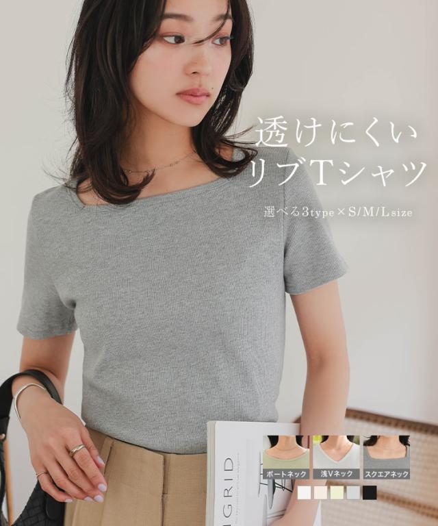 春新作 Tシャツ [ S M L ] 選べるタイプの細リブ半袖Tシャツ C3654 入荷済 レディース 半袖 トップス カットソー リブ デイリー Vネック 透けにくい 透けない きれいめ 仕事 オフィス スーツ ジャケット ホワイト ブラック 女性