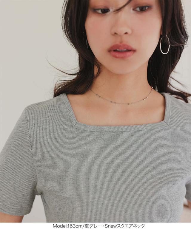 - 骨ストです。スクエアネックのトップスはあまり見かけないので、購入しました。これからの時期にちょうどいい厚さの生地で、柔らかい伸縮性のある生地で着やすいです。普段はMを購入していますが、こちらは着丈が長めでした。