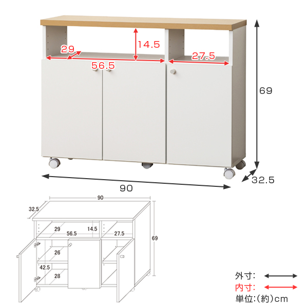 【サイズ】約幅90×奥行32.5×高さ69cm