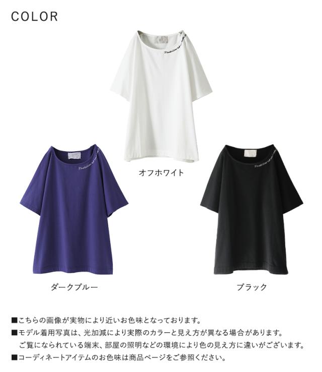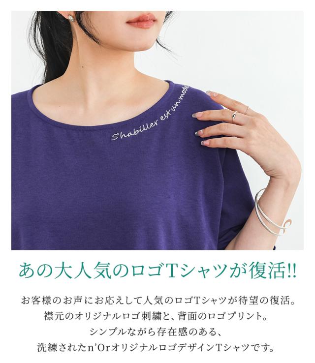レディース トップス Tシャツ カットソー プリントTシャツ プリントT ロゴT クルーネック ドルマンスリーブ 半袖 五分袖 ドロップショルダー プルオーバー プリントロゴ オリジナルロゴ 刺繍 無地 ビックシルエット おうちで洗える 薄手 涼しい 春夏 カジュアル お出掛け 旅行 大人女子 大人可愛い きれいめ モード シンプル ラフ かっこいい Mサイズ Lサイズ LLサイズ 3Lサイズ n'OrLABEL ノアールレーベル ホワイト 白 オフホワイト ブラック 黒 ぽっちゃり 体型カバー 大きいサイズ ダークブルー 青 【トップス】[ID]kom-4221006