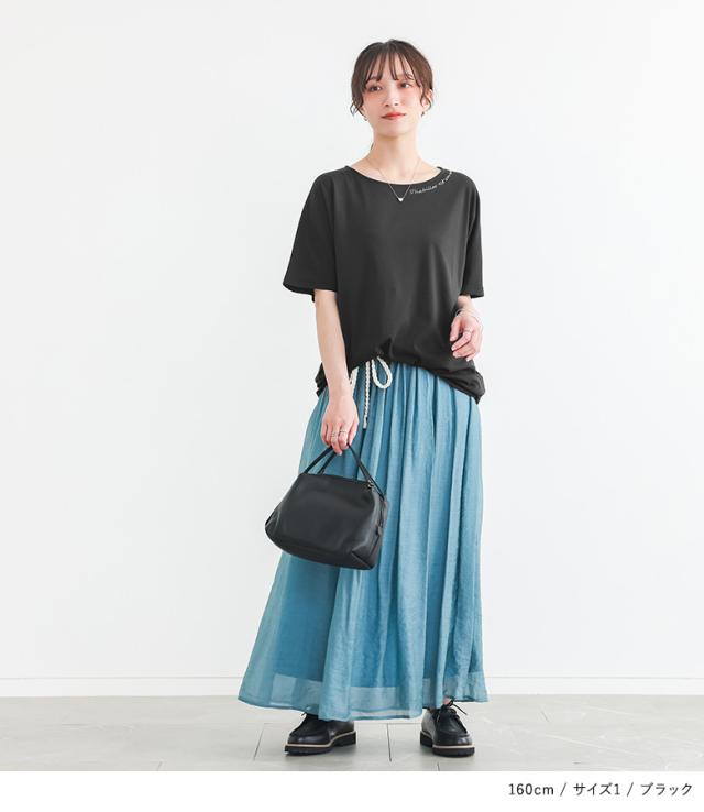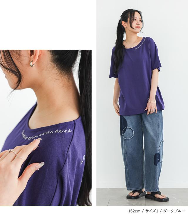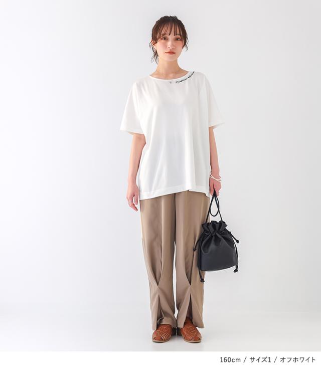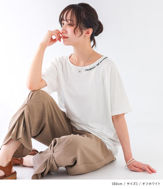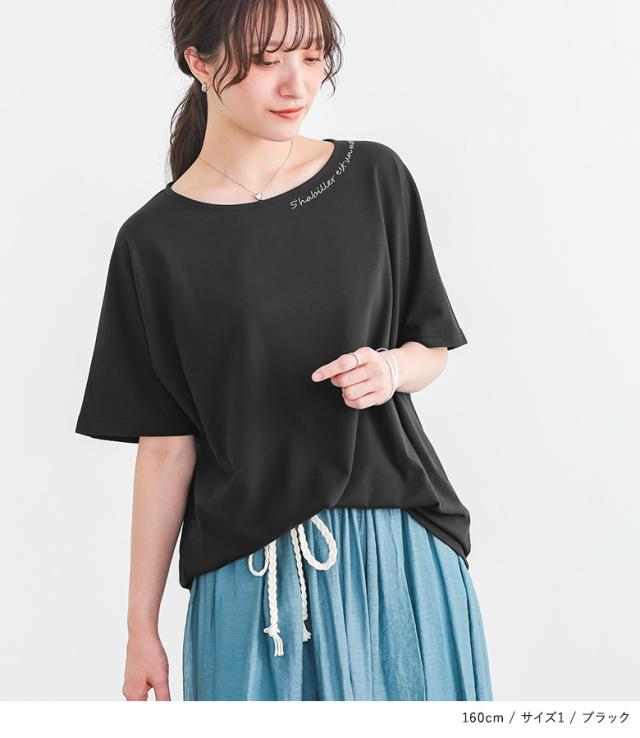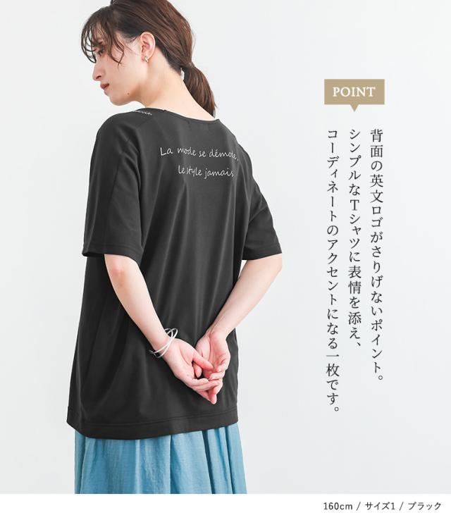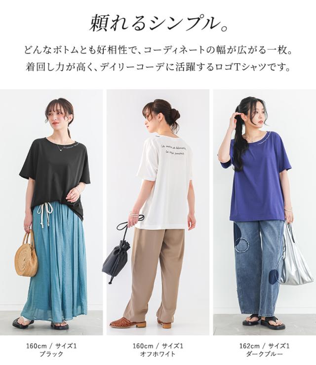『オリジナルロゴTシャツ』 ※メール便可※【10】[Tシャツ レディース トップス カットソー 半袖 ドルマンスリーブ 刺繍 ロゴT プリントT バックプリント 綿混 ラウンドネック ゆったり 体型カバー お尻が隠れる 春 夏 オシャレウォーカー]